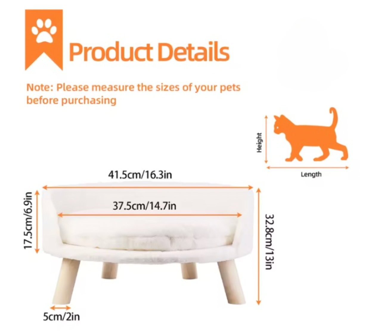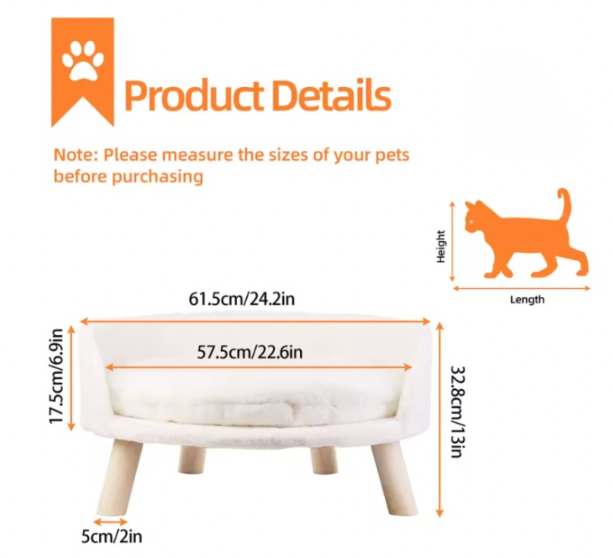 Crafted with a solid composite frame and sturdy wooden legs, this elevated lounge bed combines durability with timeless design. The soft plush fabric ensures warmth and comfort, giving your feline the perfect spot to nap, stretch, or simply rule the room.